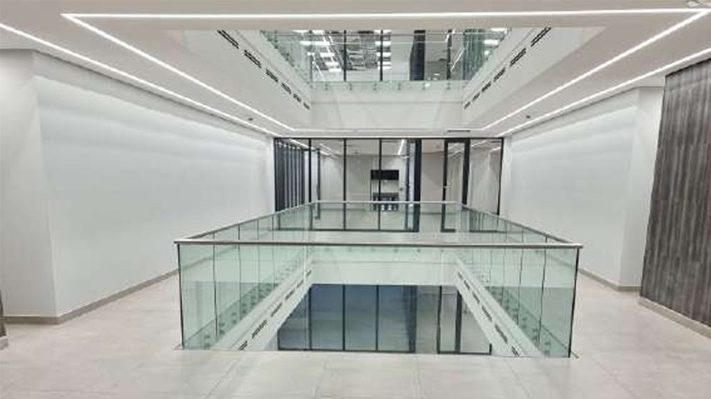 The new build is to be used as office space. A brand new link bridge connects the office building and the parkade. The construction area is approximately 24500m² for both the office building and parkade.